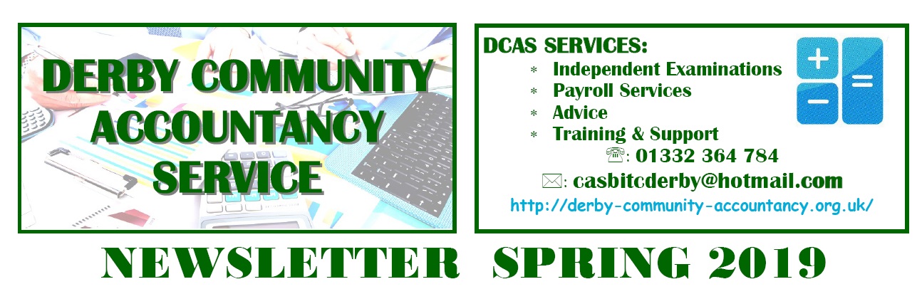 In this edition we cover changes to Income Tax, National Insurance and Statutory Payment rates; Setting Objectives the SMART way; Restricted, Unrestrictes and Designated Funds for Charities; Automatic Enrolment and Opting Out of Workplace Pensions; Honorary Presidents of Derby Community Accountancy Service