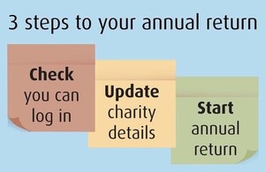 ● Find out what you need to submit here: https://www.gov.uk/guidance/prepare-a-charity-annual-return#ar-questions